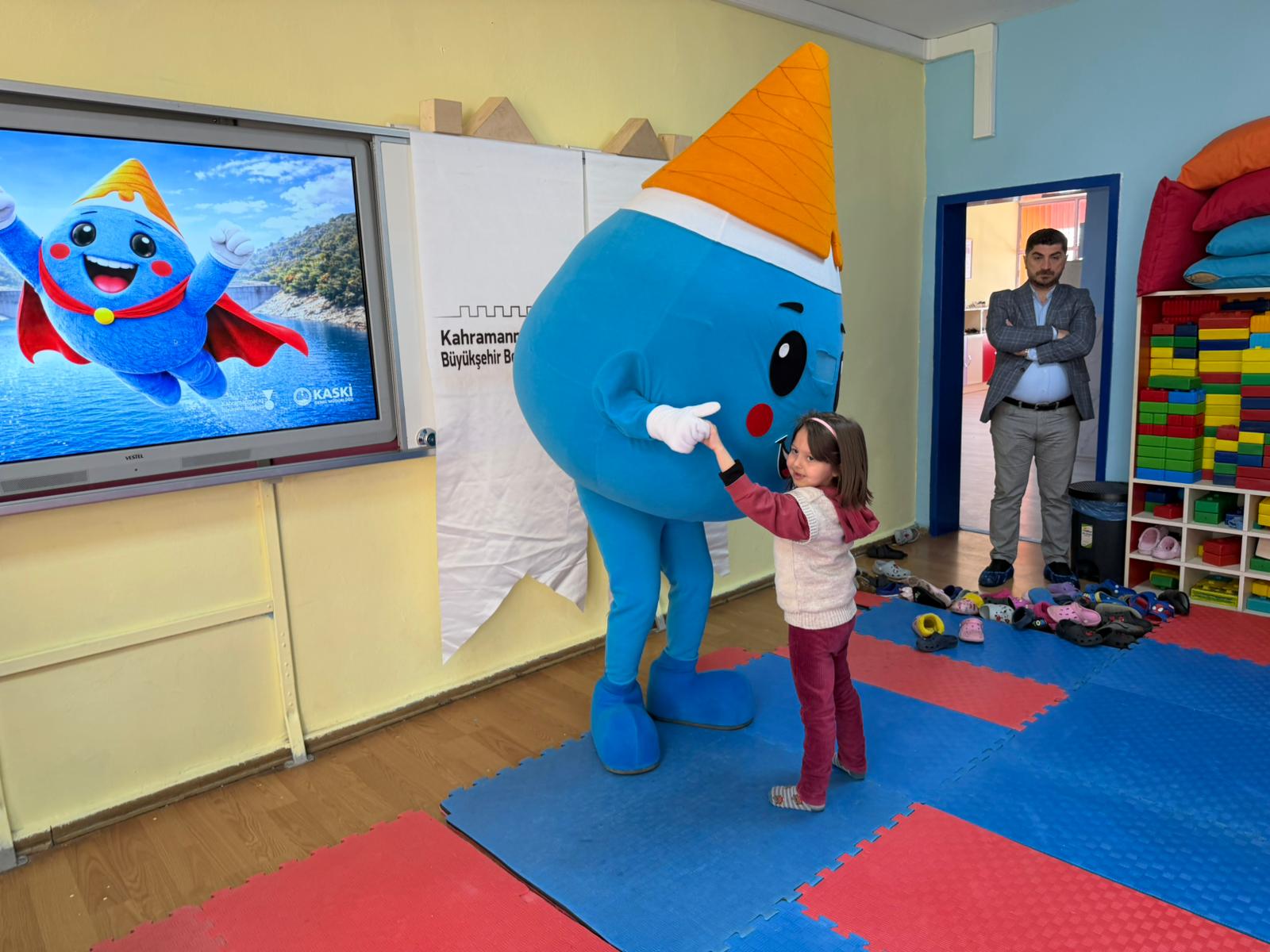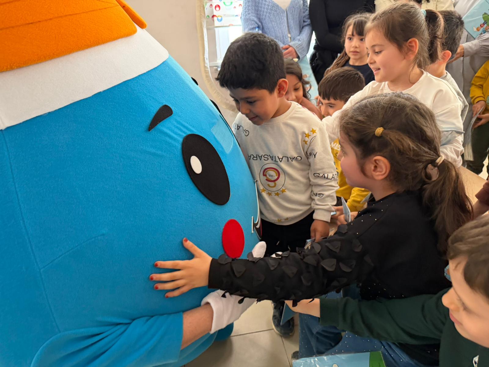 Projenin en dikkat çekici unsuru olan sevimli maskot “Mavi”, miniklerle kurduğu güçlü iletişim sayesinde verilen mesajların kalıcılığını artırıyor. Oyunlar, uygulamalı anlatımlar ve sahne performanslarıyla eğitimlere renk katan Mavi, çocukların suya karşı duyarlılık geliştirmesine önemli katkı sağlıyor.